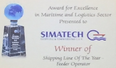28Sep2016January 9, 2020Back SIMATECH AWARDED SHIPPING LINE OF THE YEAR – FEEDER OPERATOR Simatech has been awarded as “Shipping Line of the Year – Feeder Operator” in the 7th Maritime and Logistics Award 2016 (MALA) on 28th Sep 2016 at Mumbai, India.